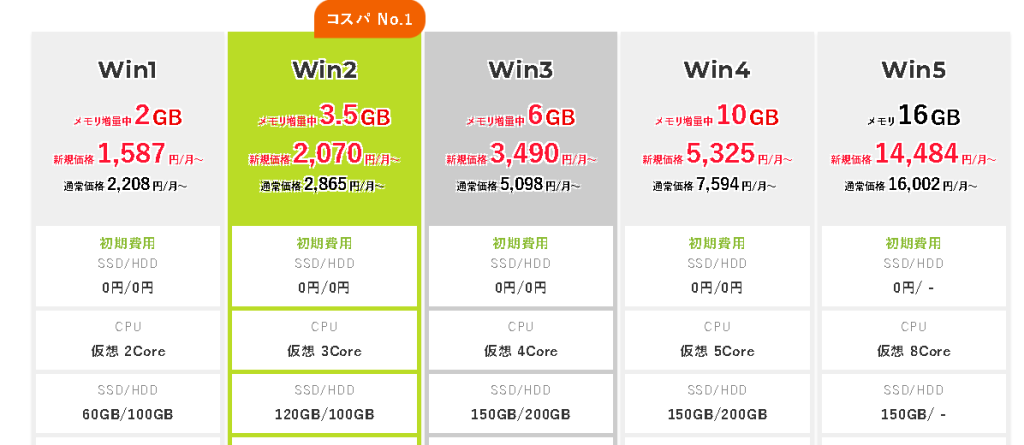 ※最低利用期間は3か月です。契約更新時は通常料金(黒字)になります
