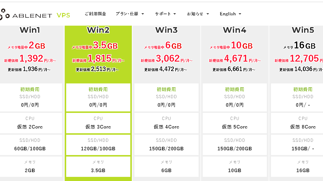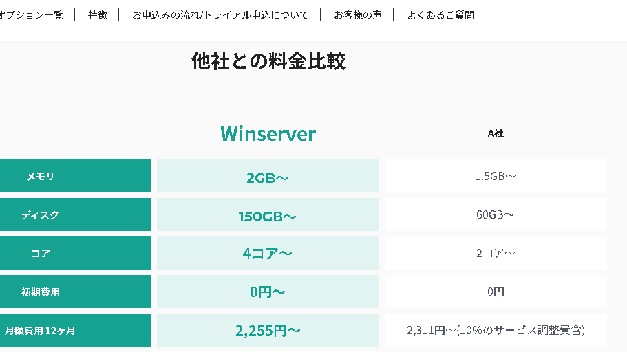 Winserver(ウィンサーバー)の料金プラン