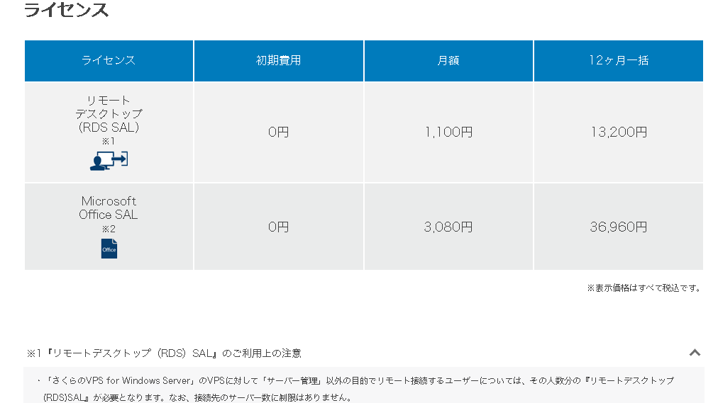 ※FX自動売買の用途ではリモートデスクトップSALのライセンス料金(月額990円)が必要になります。