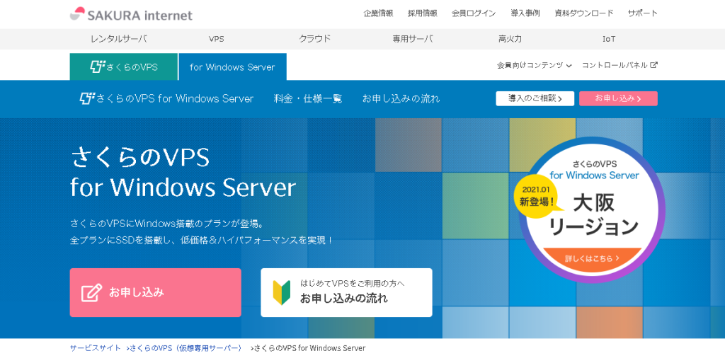 さくらのVPS for Windows Serverはさくらインターネットが提供するWindows のVPSサービスです。
