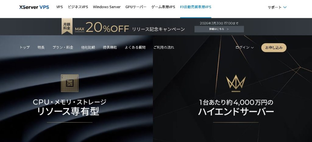 「Xserver VPS for FX プレミアム」公式サイトより画像引用。
